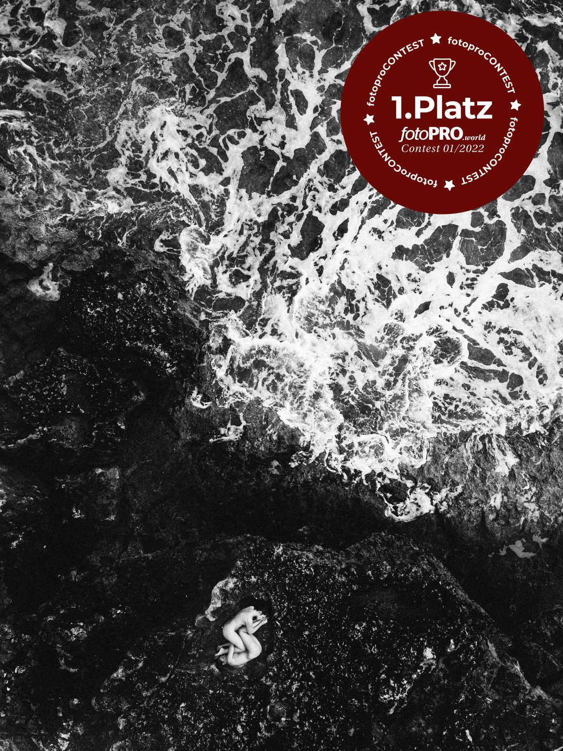 Gewonnen hat Simon Kubald mit „Two“: Von oben blickt man auf Klippen und Wasser, man sieht die sich kräuselnde Brandung und erst auf den zweiten Blick die ineinander verschlungenen Personen. „Hier hat alles gestimmt: Das Bild passt perfekt zum Thema, ist qualitativ hervorragend umgesetzt und bietet so viel Interpretationsmöglichkeiten“, so das Urteil der Jury.