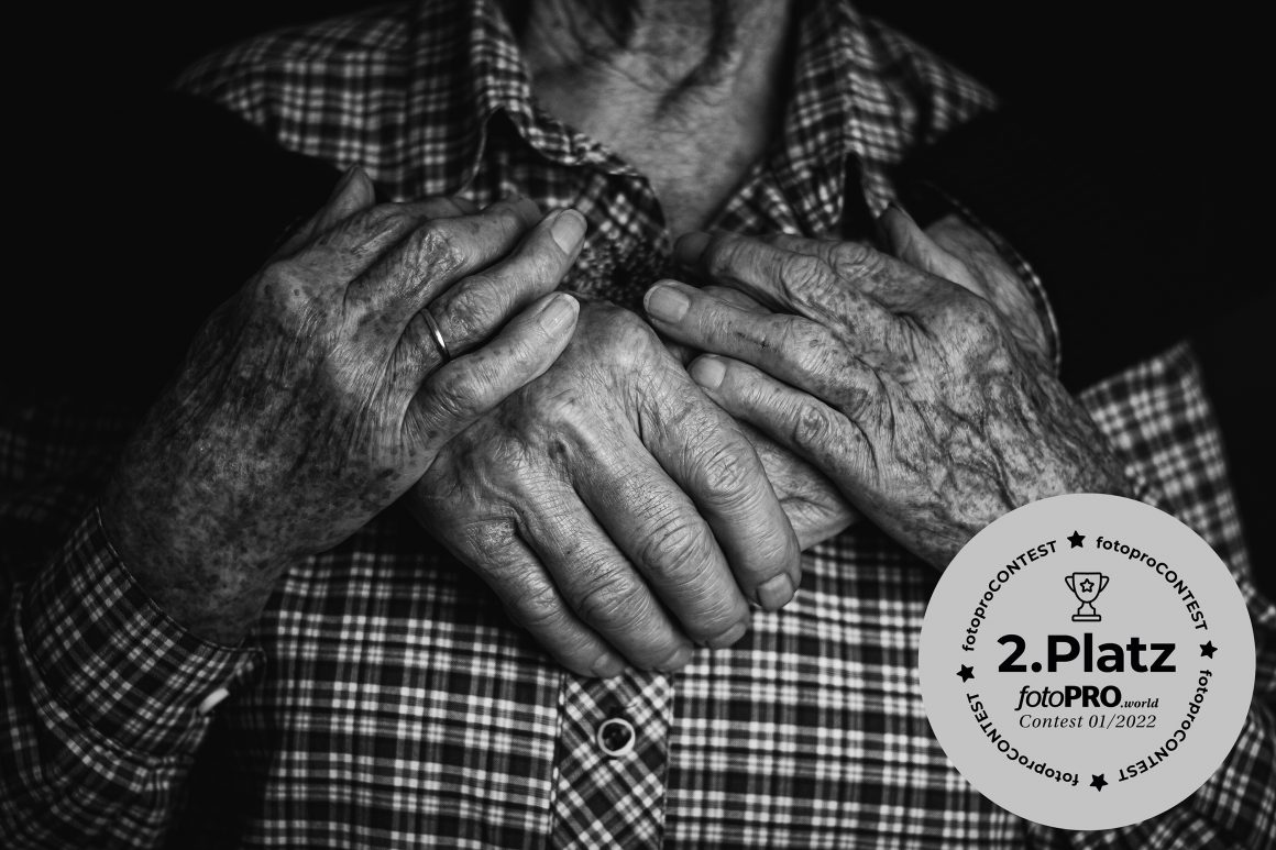 Michaela Eckerstorfer hat es mit „Zusammen seit eh und je“ auf den zweiten Platz geschafft. Sie hat ein älteres Ehepaar fotografiert, das bereit seit 64 Jahren verheiratet ist, und deren Liebe und Innigkeit gekonnt festgehalten. Ohne die Gesichter des Paares zu zeigen, strahlt das Motiv dennoch Ruhe und Zweisamkeit aus. Die Fotografin legt den Fokus auf die Hände der beiden, die sich so umschlingen, dass eine Herzform entsteht. Die strukturierte Linienführung und die professionelle Umsetzung, durch die nichts vom Wesentlichen ablenkt, runden die Aufnahme ab.