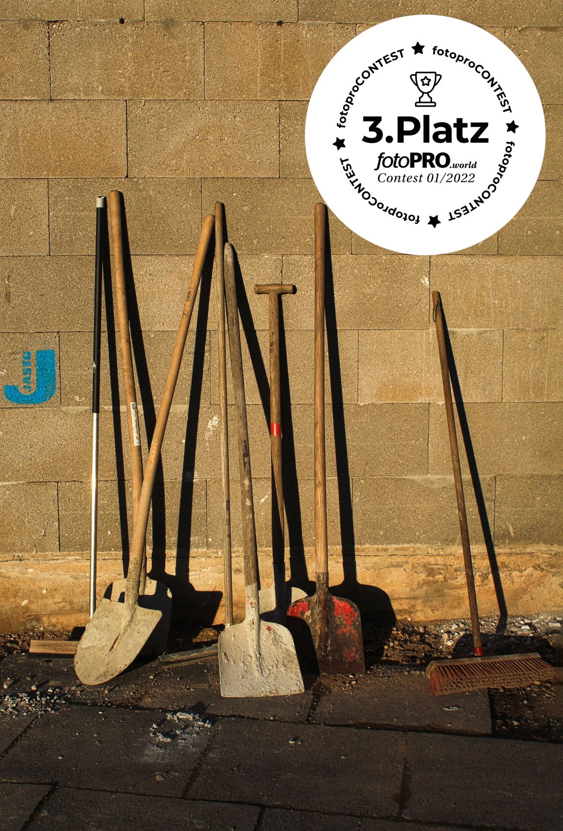 Platz drei sicherte sich Erik Heneka mit seiner Aufnahme „Feierabend im Flutgebiet“. Das Bild zeigt Schaufeln und Besen, die – angestrahlt von der Abendsonne – an einer Hausmauer lehnen. Es entstand nach einem anstrengenden Arbeitstag im Flutgebiet Swisttal: „Die Helfer:innen haben die Werkzeuge zusammen abgestellt, und danach den Tag bei gemeinsamen Gesprächen Revue passieren lassen. Auch wenn man keine Personen sehen kann auf diesem Foto erahnt man doch die Gemeinschaft die dahinter steckt“, erläutert der Fotograf. Für die Jury steht fest: Das Motiv konzentriert sich auf das Wesentliche, gibt das Wettbewerbsthema perfekt wieder und erzählt eine berührende Geschichte.
