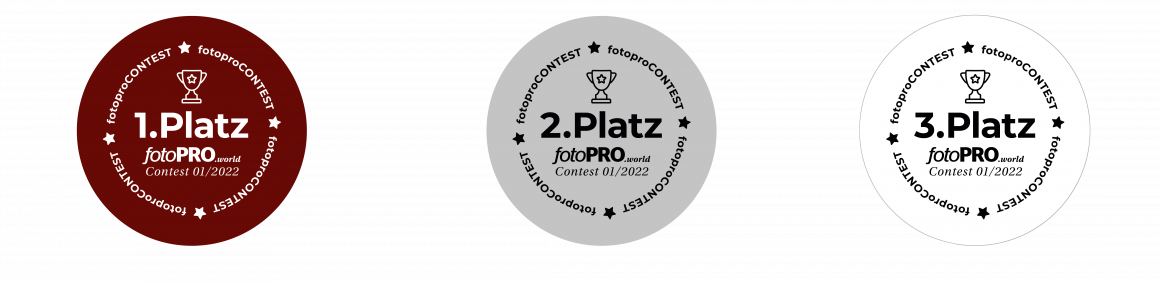Zusätzlich erhalten die 3 Gewinner:innen einen unserer exklusiven fotoPRO Contest Gewinner Badges, den Ihr für Eure Socials und Eure Homepage als Auszeichnung nutzen könnt.