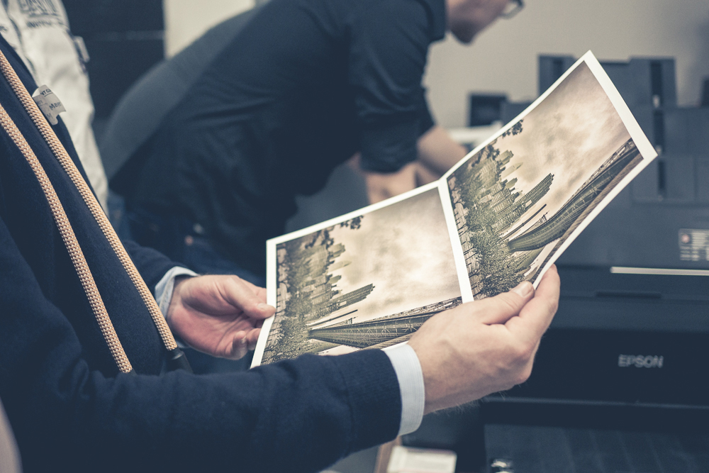 Bilder gehören gedruckt und an die Wand: Was für ein perfektes Druckergebnis nötig ist, führen die Experten während des Workshops vor. Uwe Janke von der Firma Ilford und Thomas Adorff präsentieren verschiedene Papiere sowie unterschiedliche Spezial-Techniken, die aus Fotos Unikate machen. Der perfekte Druck allein reicht jedoch nicht, ein ordentlich kalibrierter Monitor ist nötig, um exzellente Ergebnisse zu erhalten. Die Kalibrierungsexperten von Calibrite zeigen deshalb, wie ein farbechter Workflow gelingt.