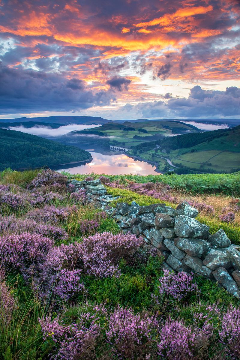 Lee Howdle beschreibt den Moment der Aufnahme als schönste Szene, die er je im Peak District gesehen habe. Der feurige Sonnenuntergangshimmel schuf zusammen mit dem tief hängenden Nebel, der Mauer, die zum Ladybower-Reservoir führt, und dem blühenden Heidekraut einen unvergesslichen Wow-Moment.