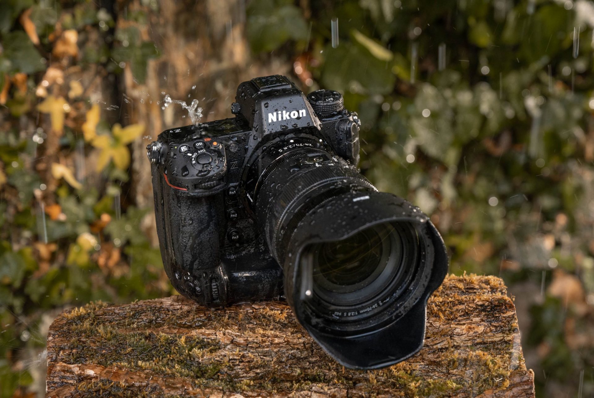 Wie es in der Profiklasse üblich ist, wurde auch die Nikon Z 9 mit einem zusätzlichen und fest verbauten Handgriff für Hochformat-Aufnahmen ausgestattet. Umfassende Wetterabdichtungen und ein robustes Magnesiumgehäuse sorgen dafür, dass die Kamera Regen, Sand und Erschütterungen standhält. Dabei spricht Nikon von einer Robustheit, „die sogar die Werte der D6 übertrifft“. Gleichzeitig fällt die Z 9 rund 20 Prozent kompakter aus als ihr DSLR-Pendant. Der Lithium-Ionen-Akku EN-EL18d ist baugleich zu dem der D6, bietet mit jetzt 3.300 mAh aber eine höhere Kapazität. Anschlüsse gibt es ebenfalls reichlich. Neben dem HDMI-Anschluss (Typ A) hat die Z 9 eine USB-C-Schnittstelle, zwei 3,5mm-Stereo-Klinkenbuchsen für ein Mikrofon und einen Kopfhörer und einen Ethernet-Anschluss zu bieten. Für eine kabellose Kommunikation kann die Z 9 mit einem eingebauten WLAN-Modul und Bluetooth 5.0 aufwarten.