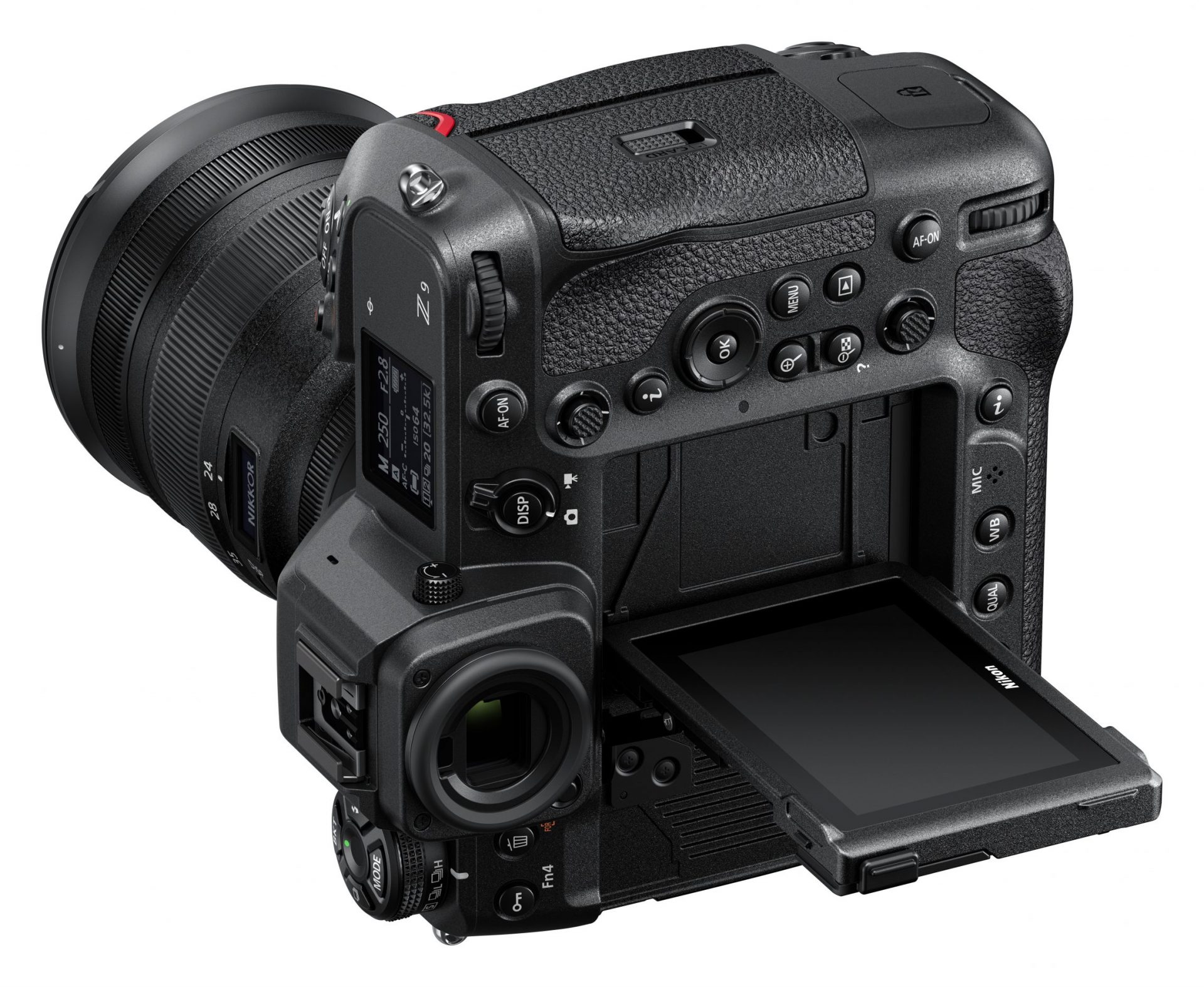 Um schnelle Bewegungen im Bild optimal verfolgen zu können, ist die Nikon Z 9 mit einem 3.000 Nit hellen elektronischen Sucher ausgestattet, der dank einer Dual-Stream-Technologie eine unterbrechungsfreie Serienaufnahmen ohne Schwarz-Phasen zeigt. Darüber hinaus spricht Nikon von einer „kontinuierlichen Echtzeitdarstellung“. Der mit 3,69 Millionen Bildpunkten auflösende Sucher soll damit also bei Bewegungen des Motivs ohne Ruckler arbeiten. Wer das Motiv gerne über den 3,2 Zoll großen Hauptmonitor auf der Kamerarückseite im Blick behält, kann mit der Z 9 noch flexibler arbeiten als mit bisherigen Nikon-DSLMs. Der Touch-Monitor ist nämlich horizontal und vertikal auf vier Achsen neigbar. Die Monitor-Auflösung beläuft sich auf 2,1 Millionen Bildpunkte.