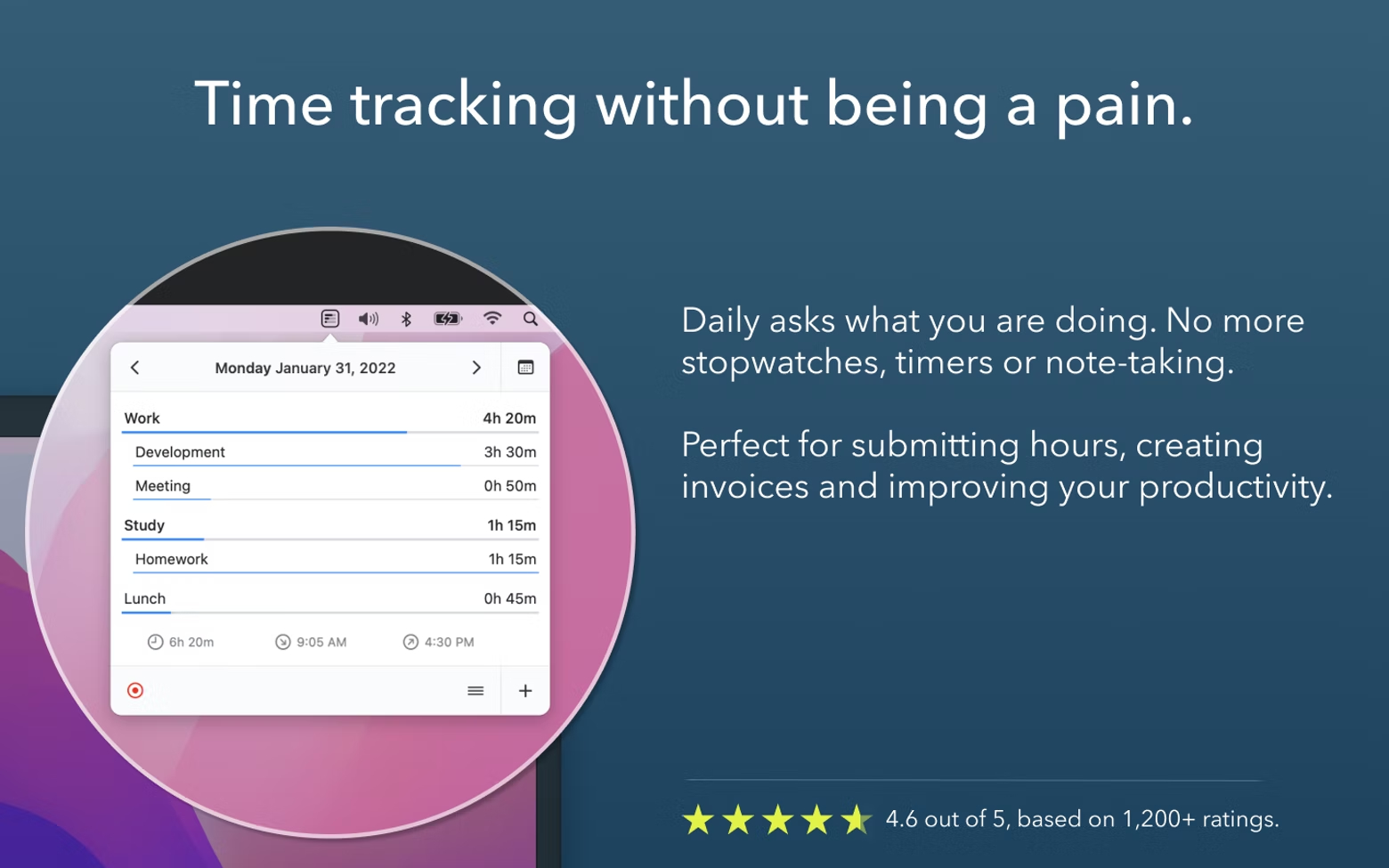 Die App verfügt über hilfreiche Features, mit denen der Nutzer seinen Tag und die Zeit, die er in verschiedene Projekte investiert, schneller erfassen kann. So finden Selbstständige genauer heraus, wie viel Zeit sie für ihre Aufgaben aufbringen, und optimieren damit ihren Tagesablauf.