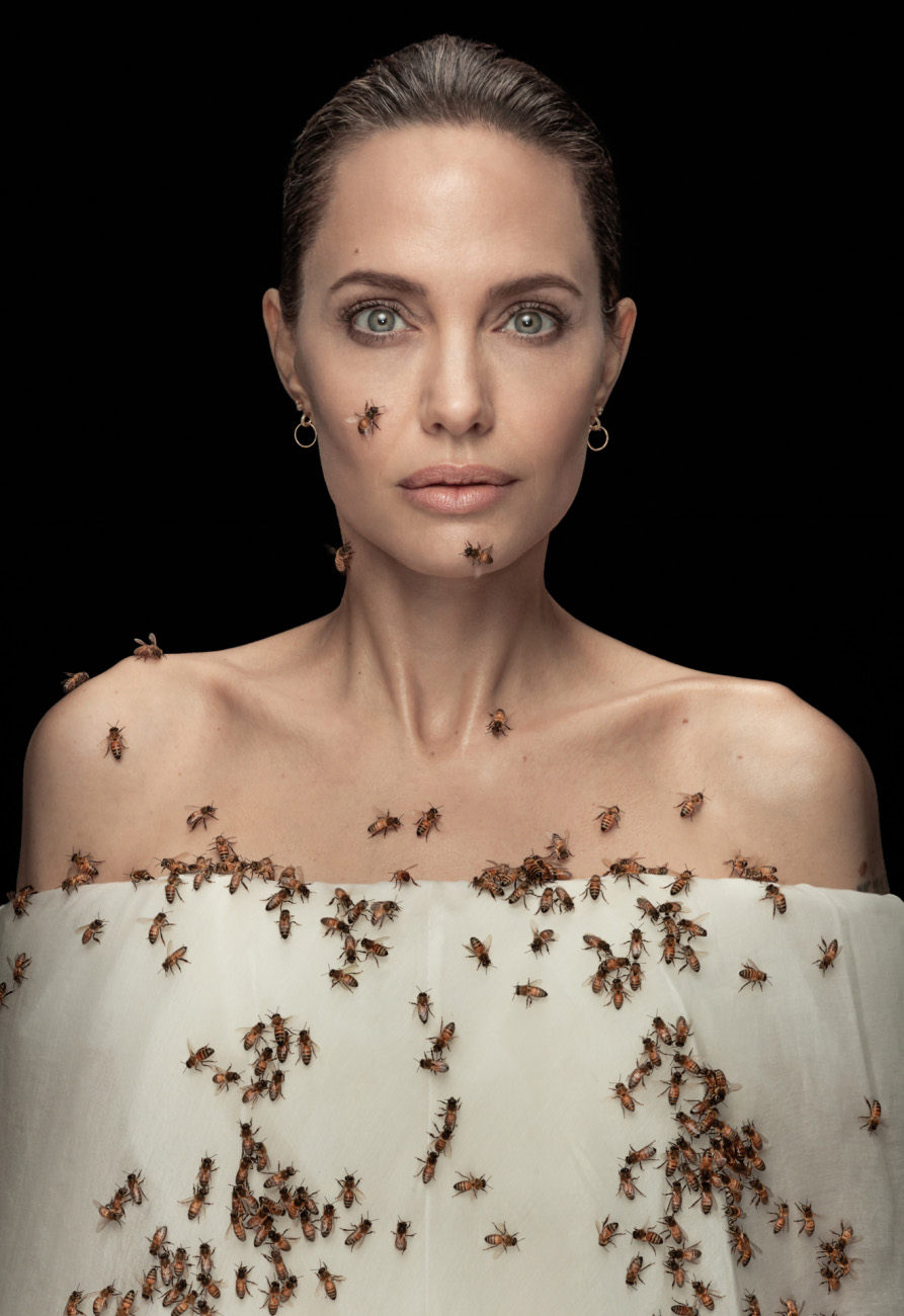 Die Protagonistin des Siegerfotos in der Kategorie „Faszinierende Gesichter und Charaktere“ des amerikanischen Fotografen Dan Winters, muss nicht vorgestellt werden. Die Aufnahme „Angelina Jolie und Bienen“ entstand für National Geographic mit dem Ziel, die Initiative der Schauspielerin anlässlich des Weltbienentags im Rahmen des Programms „Women for Bees“ zu fördern. Um die Bienen anzulocken, wurde Angelina Jolies Körper mit dem Pheromon der Bienenkönigin besprüht, und die Schauspielerin blieb 18 Minuten lang regungslos liegen, ohne gestochen zu werden.