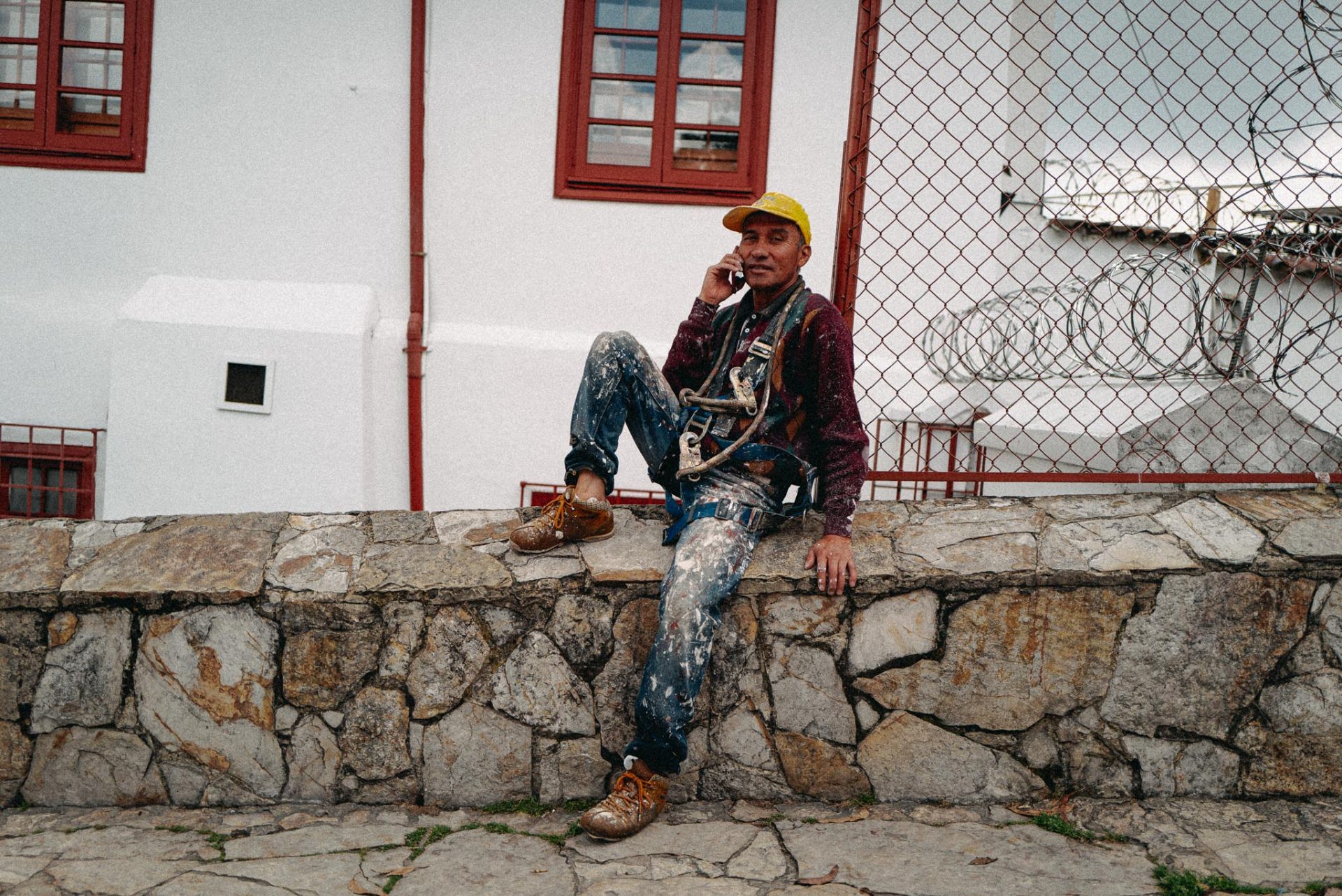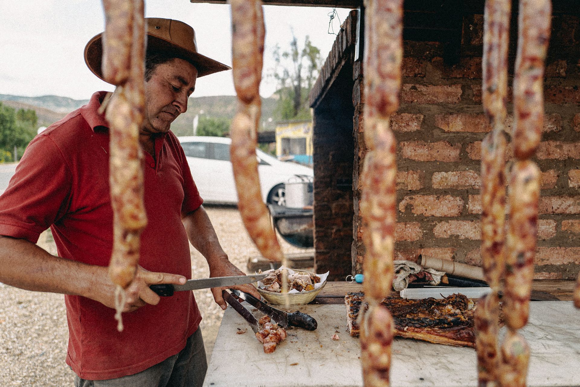 Ich reiste mit ganz kleinem Equipment und hatte die Leica Q2 zum Bildermachen und die Leica SL2 mit einem 24-90mm-Objektiv und einem Mikrofon zum Filmen dabei. Mein Ziel: möglichst mobil bleiben, um spontan und schnell zu reagieren. Nach Ankunft in Bogota besuchten wir noch kurz meinen Onkel Willy, der vor über 20 Jahren ausgewandert ist. Nach einem Kaffee und einem kurzen Lunch fuhren wir mit dem Mietwagen von Bogota nach Tunja, dem Austragungsort des Länderspiels zwischen Chile und Kolumbien. Dort schloss ich mich direkt der Mannschaft an und war bei den Trainings, bei Autogrammkarten-Sessions, bei Interviews und allem anderen dabei.