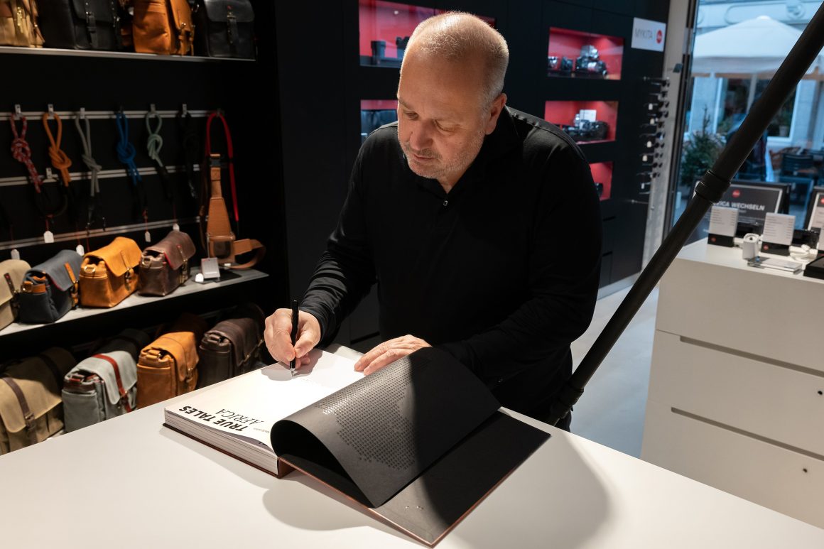 Zur Eröffnung sprach Valentin Gienger, Leica Gallery Manager und Kurator, anschließend präsentierte Klaus Mellenthin sein Buch „True Tales Africa“, das im Eigenverlag erschienen ist, den Besucher:innen live vor Ort. Er gab einen Überblick über die Porträt-Ausstellung und stellte Konzept und Design seines Bildbands vor. Anschließend führte er durch den Afrika-Teil der Ausstellung und erläuterte anhand der einzelnen Bilder seine Haltung, Sicht- und Vorgehensweise – immer im Dialog mit den Teilnehmer:innen.