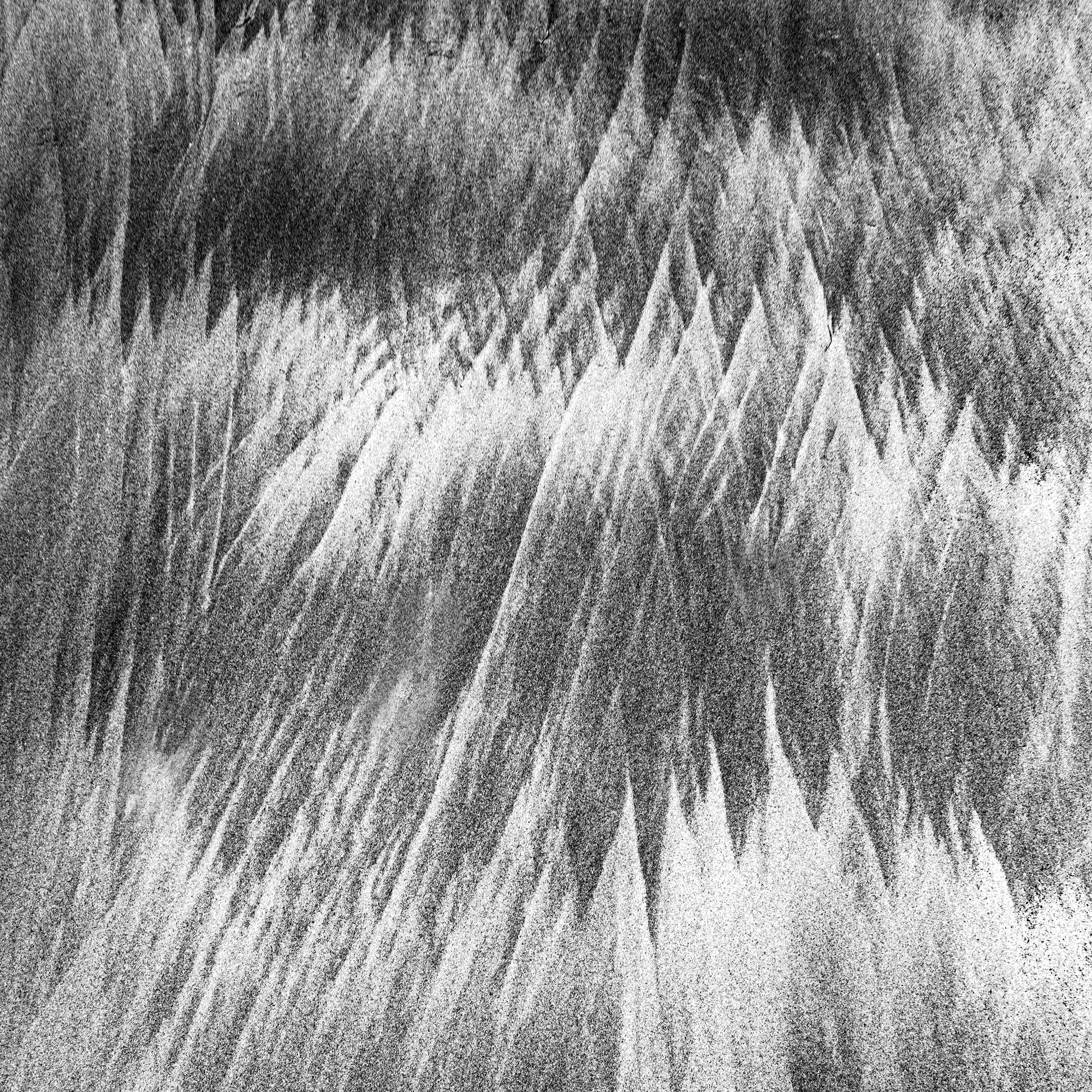 Nach gut einer Stunde Suchen fielen mir an diesem Strand endlich interessante Strukturen auf, die ein kleiner Bach in den Sand gezaubert hatte. Doch auch diese Strukturen waren nur „erstbest“, viele waren von Fußabdrücken frühmorgendlicher Spaziergänger halb zerdrückt, von Seegras leicht überdeckt oder in ihrer Form einfach doch nicht ideal. Solche Bildstörungen will niemand sehen, weil sie das eigentlich schöne Motiv entwerten. Wie immer in solchen Situationen suchte ich an diesem Strand systematisch weitere feine Bachläufe ab – und urplötzlich waren sie da: nicht erstbeste, sondern absolut perfekte grafische Muster im Sand.
